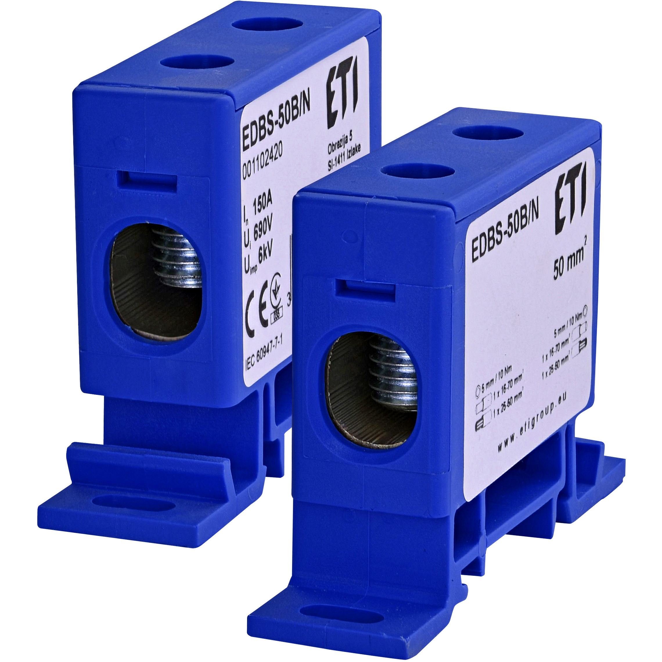 Zacisk 1-torowy Eti EDBS-50B/N 150A 16–50mm² na szynę TH niebieski – pewne i trwałe połączenia neutralne