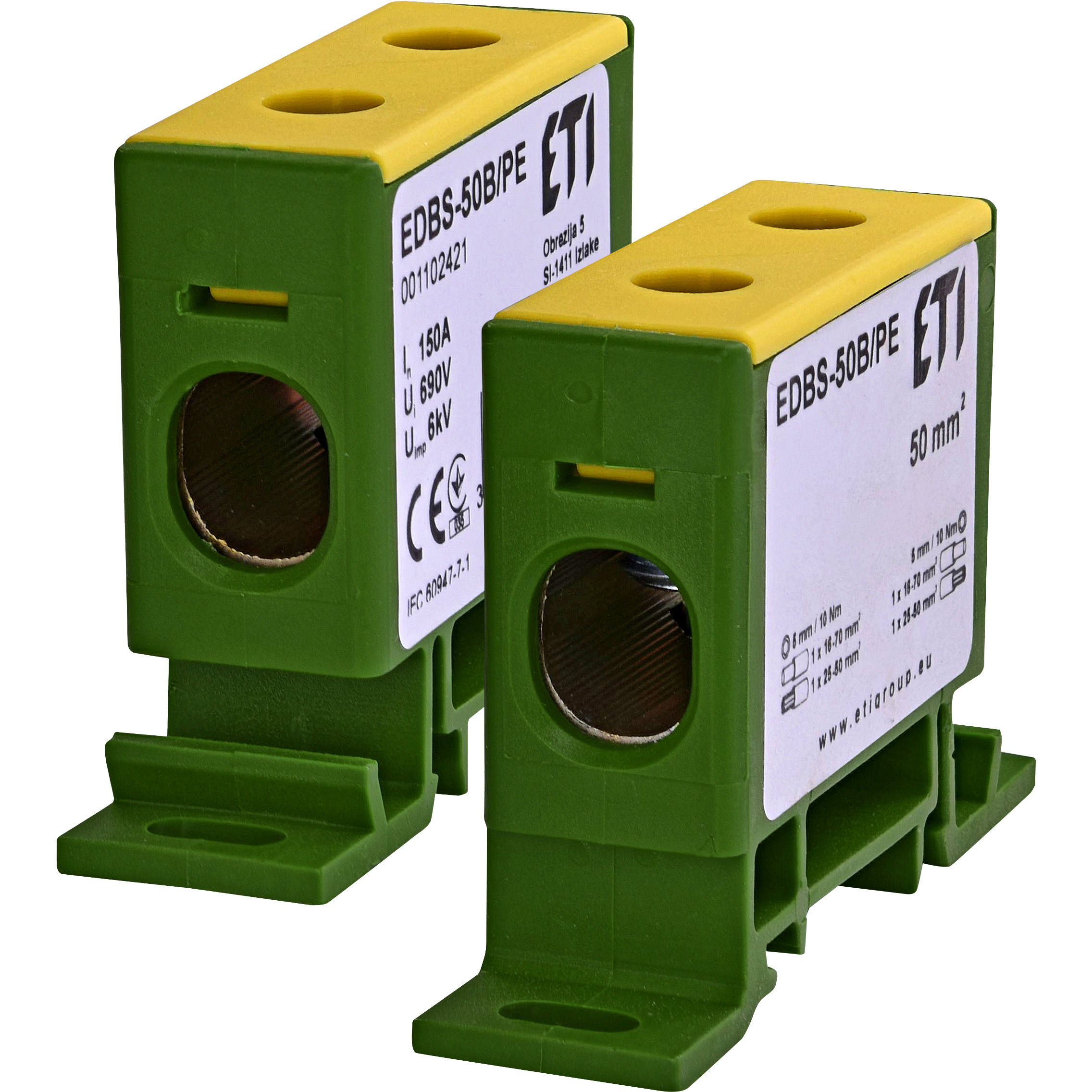 Zacisk 1-torowy Eti EDBS-50B/PE 150A 16–50mm² na szynę TH żółto-zielony – niezawodne połączenia ochronne