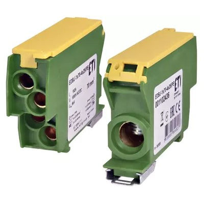 Blok rozdzielczy ETI EDBJ-1x70-4x25/PE w kolorze żółto-zielonym to wysokiej jakości element przeznaczony do bezpiecznego i wygodnego rozdziału energii elektrycznej. Oferuje prąd znamionowy 192A, jedno wejście 4–70 mm² oraz cztery wyjścia 1,5–25 mm², co czyni go uniwersalnym rozwiązaniem dla instalacji elektrycznych w obiektach mieszkalnych, komercyjnych i przemysłowych.