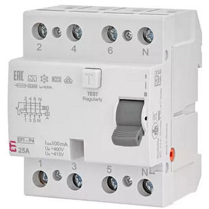 Wyłącznik różnicowoprądowy ETI EFI-P4 A 25/0.1 25A 100mA 10kA 4P Typ A – niezawodna ochrona instalacji trójfazowych