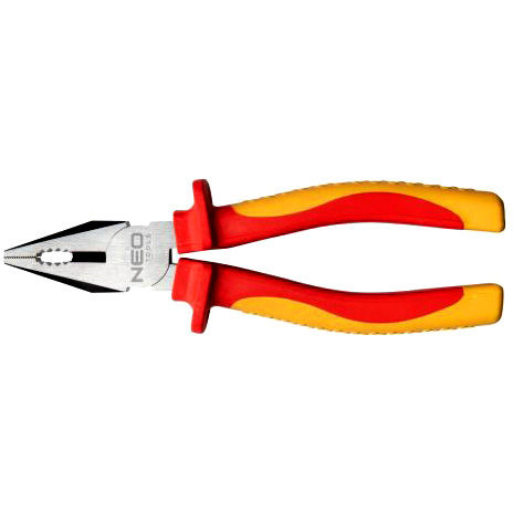 Szczypce uniwersalne 1000 V NEO o wymiarze 180 mm, wykonane zgodnie z normą DIN 5746. Atestowane do pracy pod napięciem do 1000 V. Szczęki z wysokiej jakości stali chromowo-wanadowej, hartowane indukcyjnie (55-60 HRC) zapewniają skuteczne cięcie i kształtowanie twardych drutów. Dwumateriałowa, ergonomiczna rękojeść podnosi komfort użytkowania. Jakość narzędzia potwierdzona certyfikatem TÜV i 25-letnią gwarancją producenta. Marka NEO spełnia oczekiwania profesjonalistów.