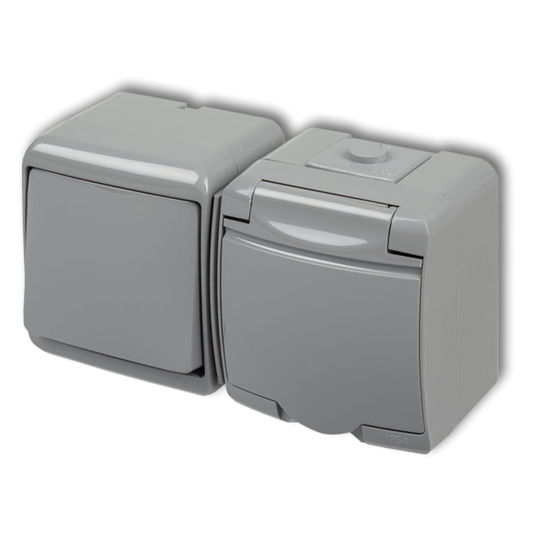 Połączenie łącznika jednobiegunowego z pojedynczym gniazdem z uziemieniem, które pozwala w jednym miejscu sterować oświetleniem i zasilać urządzenie elektryczne. Wyposażone jest w białą klapkę ochronną oraz przesłony torów prądowych, które zwiększają bezpieczeństwo użytkowania.
