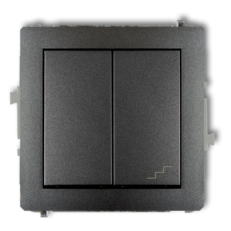 Mechanizm łącznika jednobiegunowego ze schodowym (wspólne zasilanie) w kolorze Grafitowym to mechanizm łącznika, który łączy w sobie funkcję zwykłego włącznika światła oraz schodowego. Dzięki temu można sterować jednym źródłem oświetlenia z dwóch różnych miejsc, na przykład z dołu i góry schodów. Rozwiązanie to zapewnia wygodę w codziennym użytkowaniu i oszczędność miejsca, ponieważ jeden mechanizm spełnia dwie role.