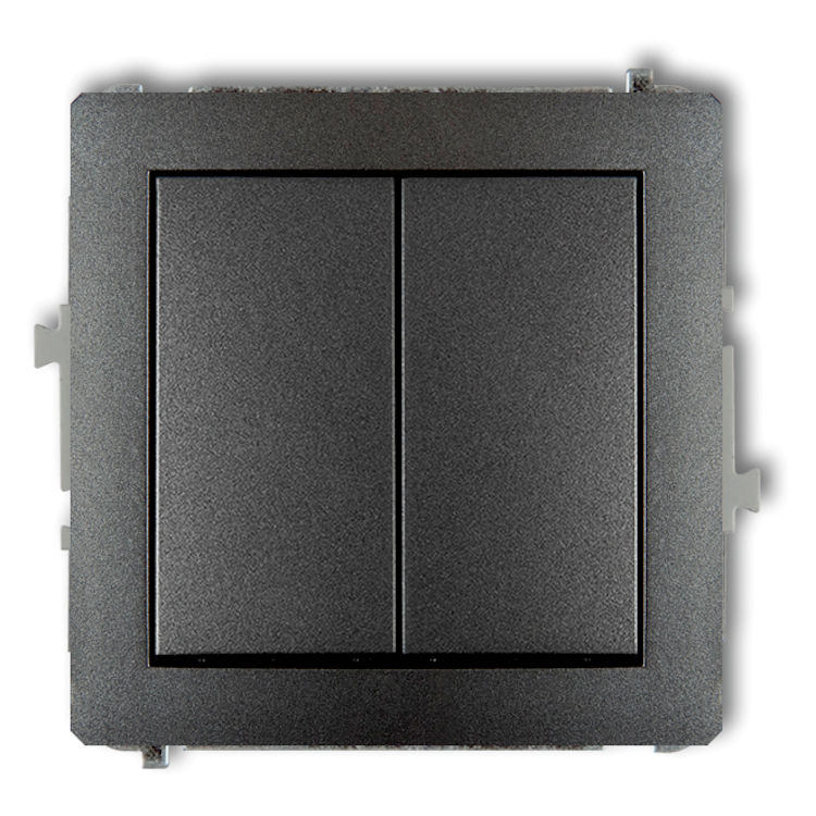 Mechanizm łącznika jednobiegunowego ze schodowym (dwa klawisze bez piktogramów, wspólne zasilanie) w kolorze Grafitowym to mechanizm łącznika, który łączy w sobie funkcję zwykłego włącznika światła oraz schodowego. Dzięki temu można sterować jednym źródłem oświetlenia z dwóch różnych miejsc, na przykład z dołu i góry schodów. Rozwiązanie to zapewnia wygodę w codziennym użytkowaniu i oszczędność miejsca, ponieważ jeden mechanizm spełnia dwie role.