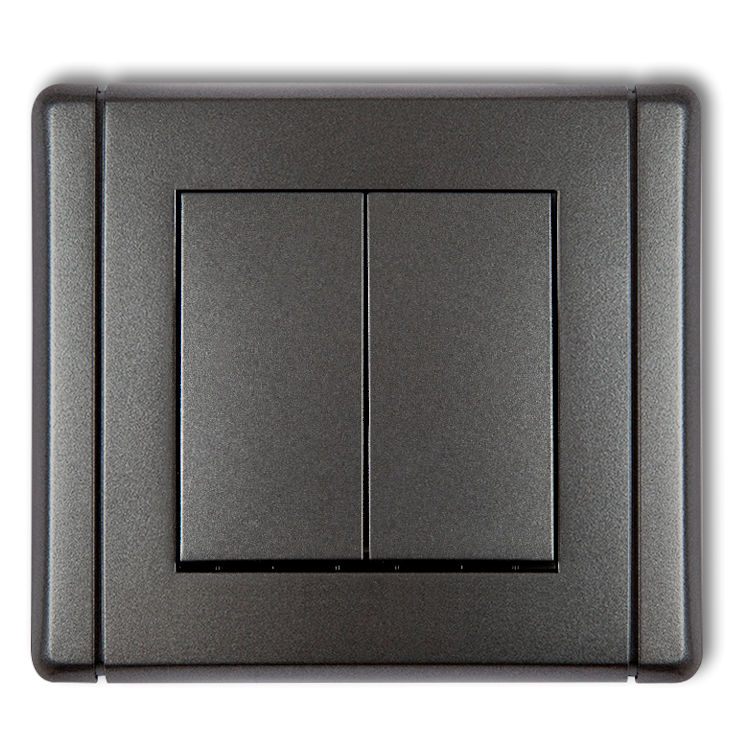 Łącznik jednobiegunowy ze schodowym (dwa klawisze bez piktogramów, wspólne zasilanie) w kolorze Grafitowym to mechanizm łącznika, który łączy w sobie funkcję jednobiegunowego oraz schodowego, wykorzystując wspólne zasilanie. Umożliwia sterowanie jednym źródłem światła z dwóch różnych miejsc, co zwiększa wygodę użytkowania, na przykład na klatce schodowej lub w długim korytarzu. Rozwiązanie to zapewnia funkcjonalność i oszczędność miejsca, ponieważ jeden mechanizm spełnia dwie role.