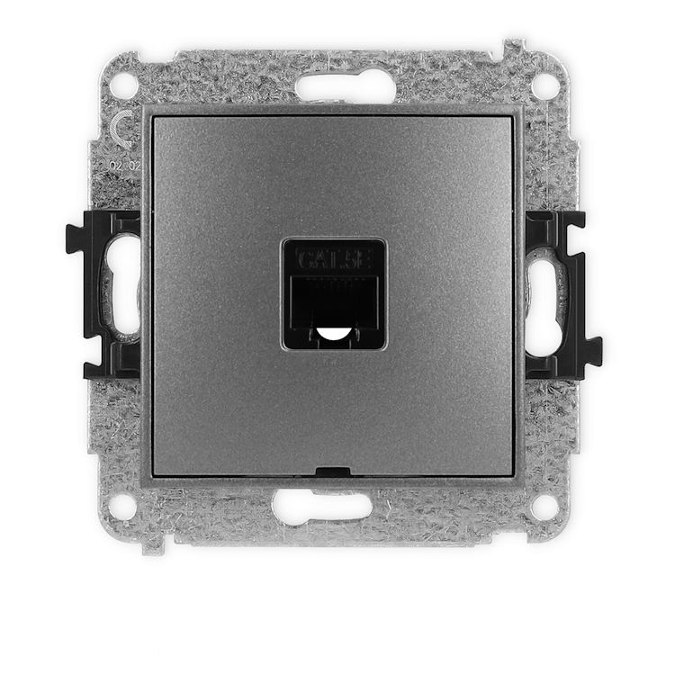 Mechanizm gniazda komputerowego pojedynczego 1xRJ45, kat. 5e, 8-stykowy, bez pola opisowego w kolorze Grafitowym to gniazdo komputerowe z jednym wejściem RJ45, które służy do podłączenia przewodu sieciowego. Obsługuje kategorię 5e, co pozwala na szybki i stabilny transfer danych w domowej lub biurowej sieci internetowej. Dzięki niemu można podłączyć komputer, router czy inne urządzenie wymagające dostępu do Internetu przewodowego.