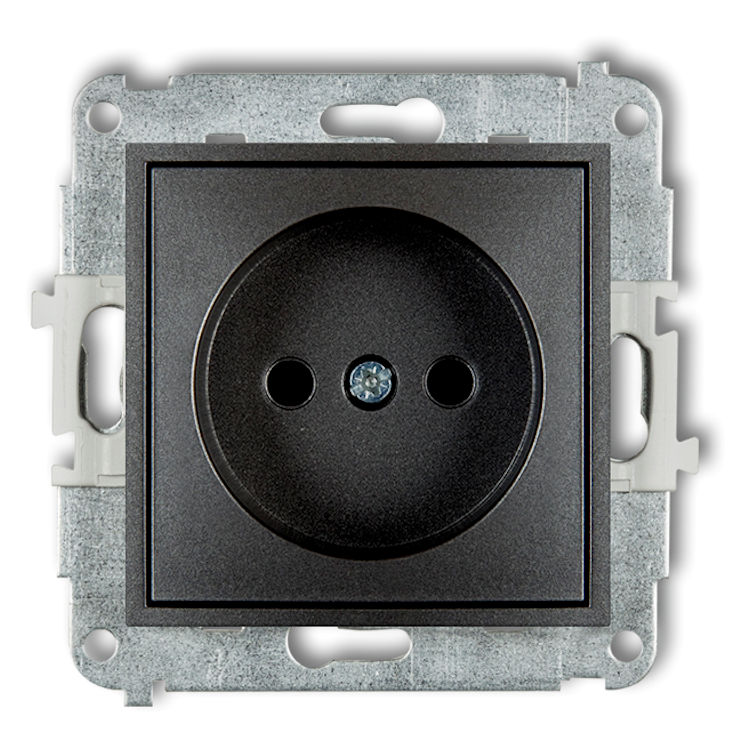 Pojedyncze gniazdo elektryczne bez uziemienia, przeznaczone do podłączania urządzeń niewymagających dodatkowej ochrony. Wyposażone jest w przesłony torów prądowych, które zasłaniają otwory, gdy nie ma wtyczki. Dzięki temu korzystanie z gniazda jest bezpieczniejsze, zwłaszcza w miejscach, gdzie przebywają dzieci.