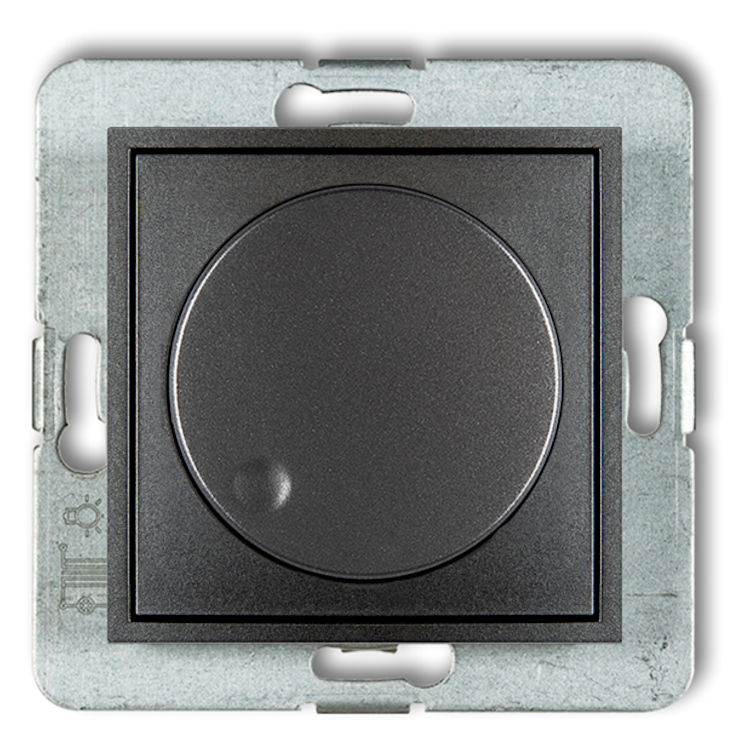 Mechanizm elektronicznego regulatora oświetlenia przyciskowo-obrotowego do lamp LED w kolorze Grafitowym to elektroniczny regulator oświetlenia przyciskowo-obrotowy do lamp LED (ściemniacz) umożliwia regulację oświetlenia ściemnialnego ledowego, halogenowego zasilanego poprzez transformator elektroniczny oraz żarowego. Zastosowanie regulatora zwiększa komfort i codzienną oszczędność energii elektrycznej, której zużycie jest proporcjonalne do natężenia światła. Elektroniczny regulator oświetlenia przyciskowo-obrotowy do lamp LED jest urządzeniem inteligentnym, które można zaprogramować, ustawiając indywidualnie wg potrzeb minimalny poziom oświetlenia oraz tryb pracy.
