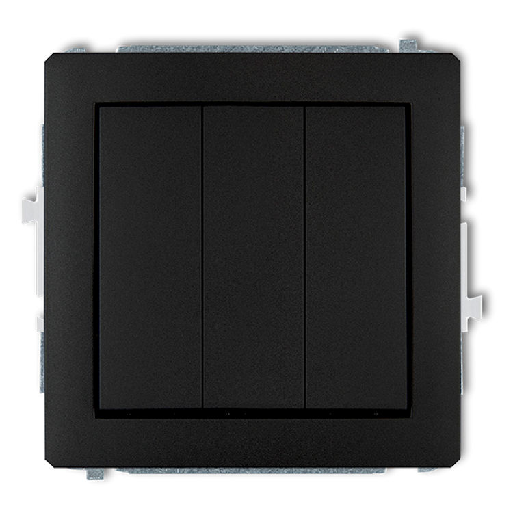 Mechanizm łącznika potrójnego w kolorze Czarnym Mat to mechanizm łącznika, który umożliwia sterowanie trzema niezależnymi obwodami oświetleniowymi z jednego miejsca. Dzięki niemu można osobno włączać i wyłączać różne źródła światła, co pozwala dopasować oświetlenie do aktualnych potrzeb. Rozwiązanie to zapewnia wygodę i oszczędność miejsca, ponieważ zastępuje trzy oddzielne włączniki jednym mechanizmem.