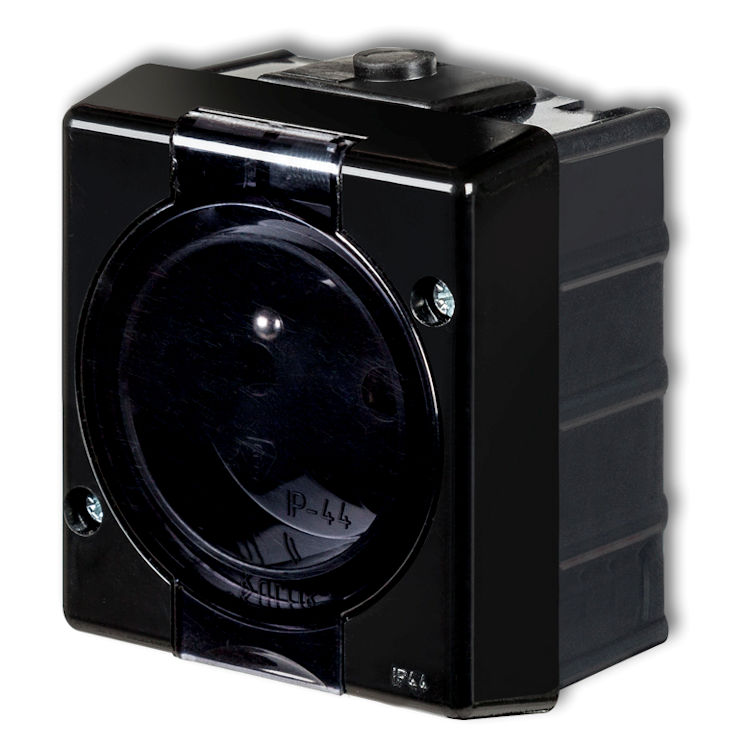 12GHS-1d Gniazdo pojedyncze z uziemieniem 2P+Z (klapka dymna) Czarny
