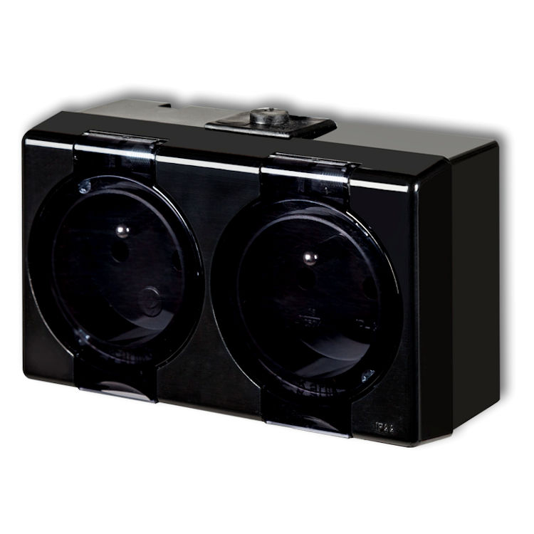 12GHS-2nd Gniazdo podwójne z uziemieniem 2x(2P+Z) (klapka dymna) Czarny