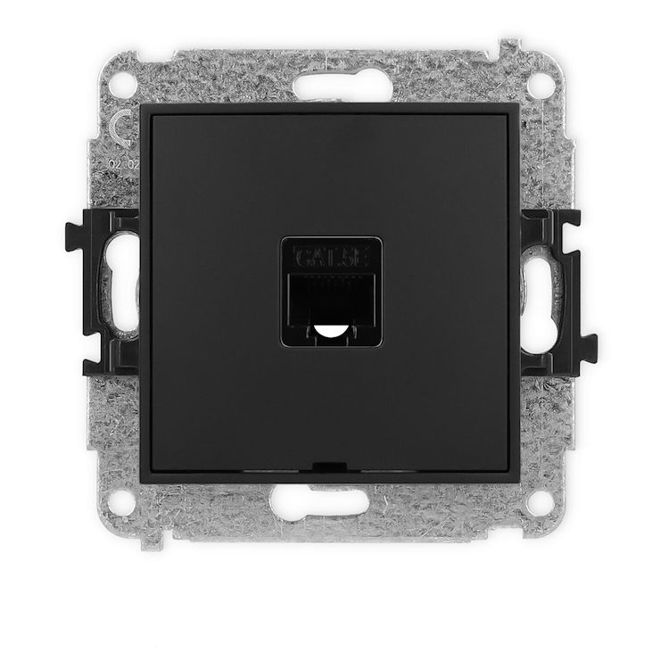 Mechanizm gniazda komputerowego pojedynczego 1xRJ45, kat. 5e, 8-stykowy, bez pola opisowego w kolorze Czarnym Mat to gniazdo komputerowe z jednym wejściem RJ45, które służy do podłączenia przewodu sieciowego. Obsługuje kategorię 5e, co pozwala na szybki i stabilny transfer danych w domowej lub biurowej sieci internetowej. Dzięki niemu można podłączyć komputer, router czy inne urządzenie wymagające dostępu do Internetu przewodowego.
