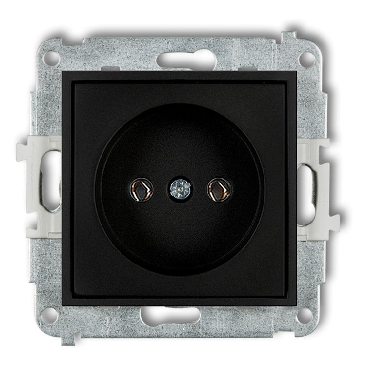 Mechanizm gniazda pojedynczego bez uziemienia 2P (bez przesłon torów prądowych) w kolorze Czarnym Mat to proste gniazdo elektryczne z jednym wejściem, przeznaczone do podłączania urządzeń nie wymagających uziemienia. Posiada dwa otwory na wtyczkę i umożliwia zasilanie podstawowych sprzętów elektrycznych. Brak przesłon oznacza, że otwory są cały czas odsłonięte, dlatego zaleca się stosowanie go w miejscach bez dostępu dzieci.