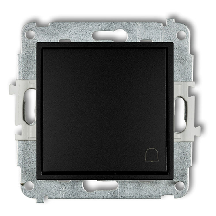 Mechanizm łącznika zwierny dzwonek w kolorze Czarnym Mat to łącznik, który działa tylko w momencie przytrzymania klawisza. Po jego naciśnięciu obwód zostaje zamknięty i prąd płynie, a po puszczeniu klawisza obwód automatycznie się otwiera. Najczęściej używany jest do obsługi dzwonków do drzwi, domofonów lub innych urządzeń, które mają działać tylko chwilowo.
