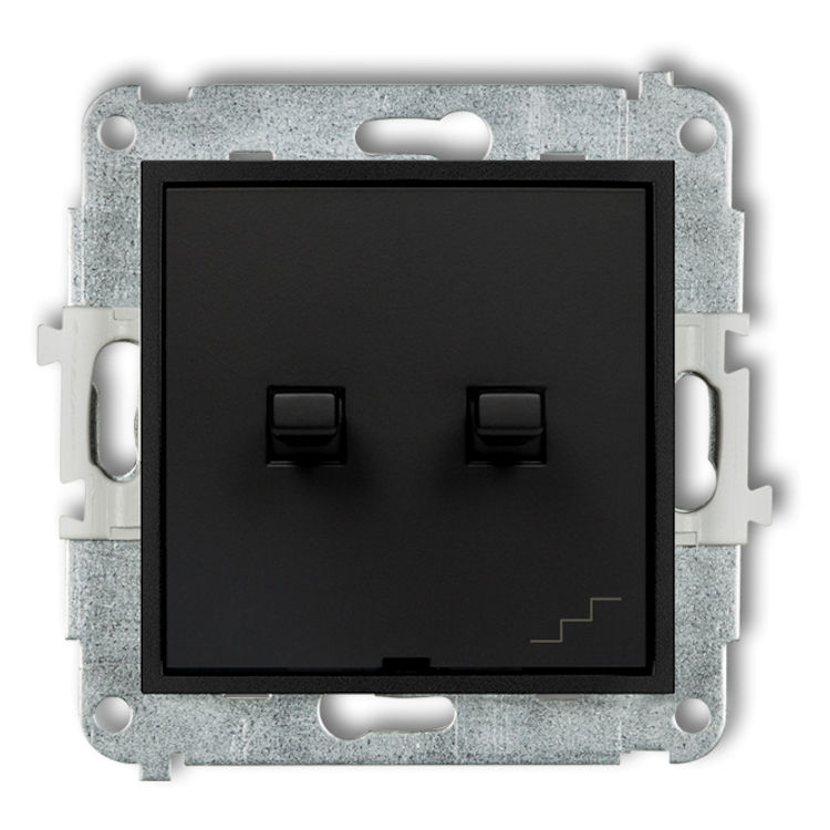 Mechanizm łącznika jednobiegunowego ze schodowym (wspólne zasilanie) w stylu amerykańskim w kolorze Czarnym Mat to łącznik w stylu amerykańskim, który łączy w sobie funkcję zwykłego włącznika światła oraz tzw. łącznika schodowego. Umożliwia sterowanie jednym źródłem oświetlenia z dwóch różnych miejsc, na przykład z dołu i góry schodów, a dodatkowo pozwala obsługiwać drugi obwód z tego samego mechanizmu.