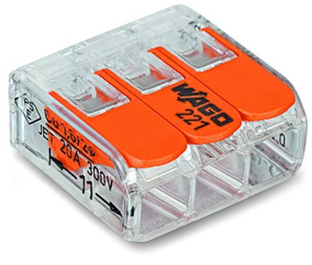 Szybkozłączka na drut/linke uniwersalne 3x4mm2 przeźroczysto-pomarańczowa