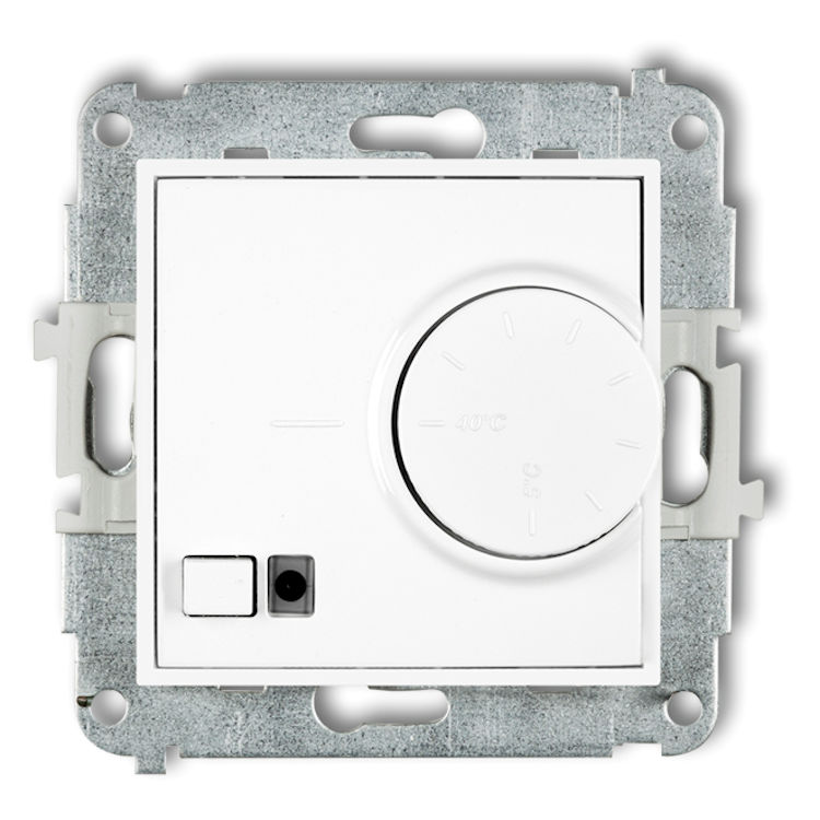 Mechanizm elektronicznego regulatora temperatury z czujnikiem powietrznym w kolorze Białym Mat to elektroniczny regulator temperatury umożliwia utrzymanie nastawionej temperatury powietrza w sposób automatyczny. Regulator z czujnikiem napowietrznym stosuje się w pomieszczeniach, w których zastosowano dowolny rodzaj ogrzewania (ogrzewanie podłogowe lub za pomocą grzejników). Każdy z obwodów stanowi niezależny system grzejny, który można indywidualnie programować.
