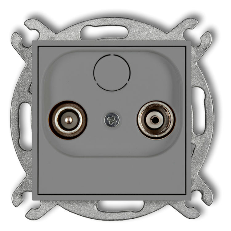 Mechanizm gniazda abonenckiego RTV końcowego 2dB w kolorze szarym mat to gniazdo antenowe przeznaczone do podłączenia telewizora i radia, montowane jako ostatnie. Nie przekazuje już sygnału dalej, tylko kończy instalację. Tłumienie na poziomie 2 dB zapewnia prawidłową jakość odbioru w końcowym punkcie sieci antenowej.