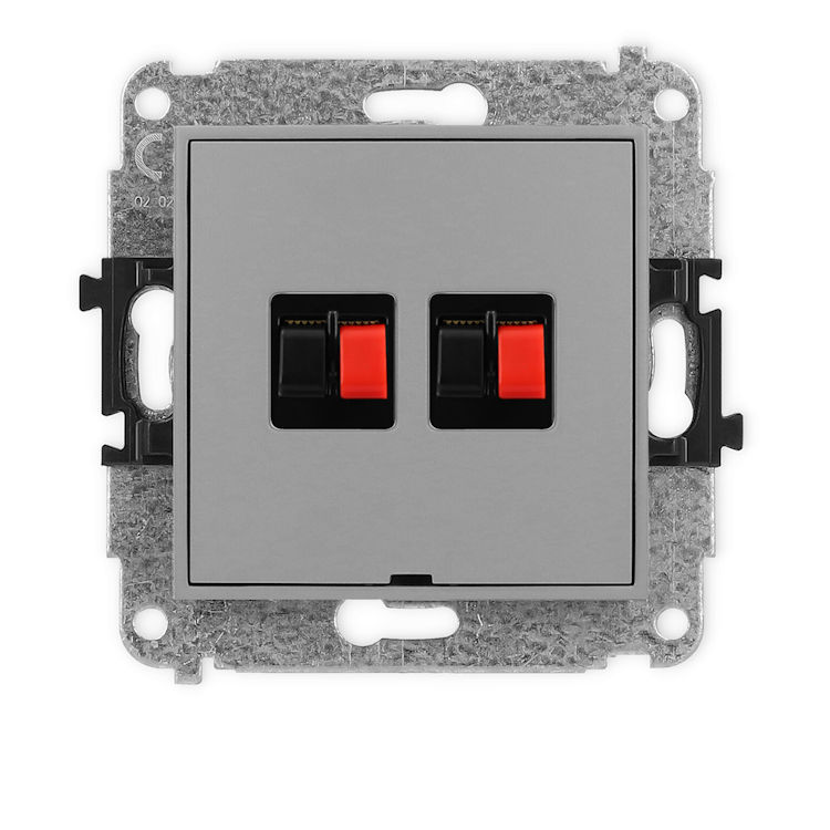 Mechanizm gniazda głośnikowego podwójnego, bez pola opisowego w kolorze Szarym Mat to gniazdo przeznaczone do podłączenia dwóch głośników przewodowych. Ułatwia podłączenie i odłączenie kabli, zapewniając stabilne i pewne połączenie bez ryzyka ich wysuwania się. Dzięki temu można w estetyczny i wygodny sposób zorganizować domową instalację audio.
