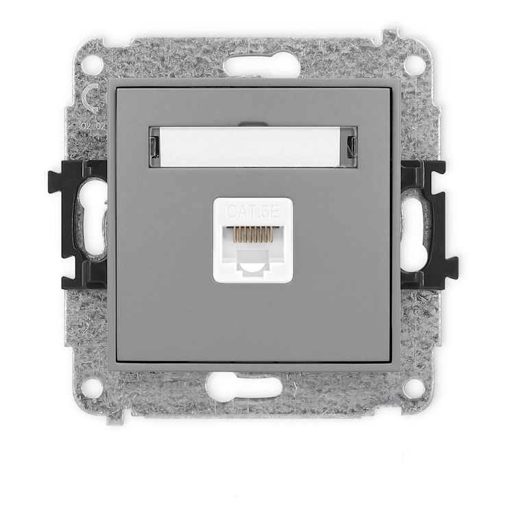 Mechanizm gniazda komputerowego pojedynczego 1xRJ45, kat. 5e, 8-stykowy w kolorze Szarym Mat to gniazdo komputerowe z jednym wejściem RJ45, które służy do podłączenia przewodu sieciowego. Obsługuje kategorię 5e, co pozwala na szybki i stabilny transfer danych w domowej lub biurowej sieci internetowej. Dzięki niemu można podłączyć komputer, router czy inne urządzenie wymagające dostępu do Internetu przewodowego.