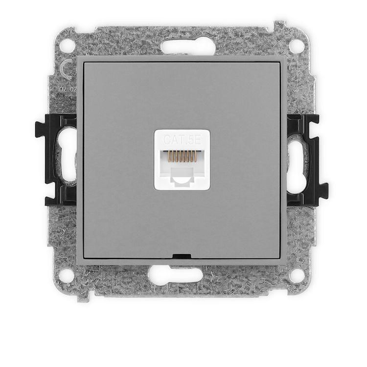 Mechanizm gniazda komputerowego pojedynczego 1xRJ45, kat. 5e, 8-stykowy, bez pola opisowego w kolorze Szarym Mat to gniazdo komputerowe z jednym wejściem RJ45, które służy do podłączenia przewodu sieciowego. Obsługuje kategorię 5e, co pozwala na szybki i stabilny transfer danych w domowej lub biurowej sieci internetowej. Dzięki niemu można podłączyć komputer, router czy inne urządzenie wymagające dostępu do Internetu przewodowego.