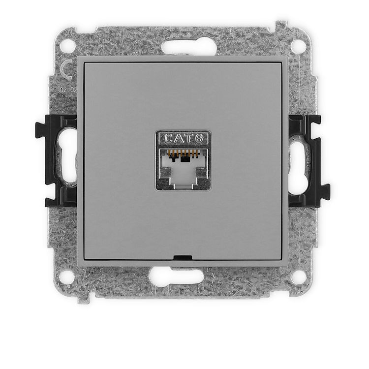 Mechanizm gniazda komputerowego pojedynczego 1xRJ45, kat. 5e, ekranowany, 8-stykowy, bez pola opisowego w kolorze Szarym Mat to gniazdo komputerowe z jednym wejściem RJ45, które służy do podłączenia przewodu sieciowego. Obsługuje kategorię 5e, co pozwala na szybki i stabilny transfer danych w domowej lub biurowej sieci internetowej. Dzięki niemu można podłączyć komputer, router czy inne urządzenie wymagające dostępu do Internetu przewodowego.