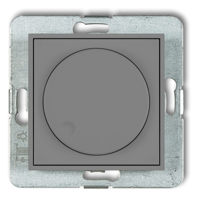 Mechanizm elektronicznego regulatora oświetlenia przyciskowo-obrotowego w kolorze Szarym Mat to elektroniczny regulator oświetlenia przyciskowo-obrotowy (ściemniacz) umożliwia bezstopniową regulację natężenia światła od 0 do 100% pełnej mocy oświetlenia, przy użyciu prawie każdej oprawy. Zwiększa w ten sposób komfort i codzienną oszczędność energii elektrycznej, której zużycie jest proporcjonalne do poziomu oświetlenia. Układ umożliwia inteligentne sterowanie systemami oświetleniowymi, dając komfort, wygodę i oszczędność w użytkowaniu.