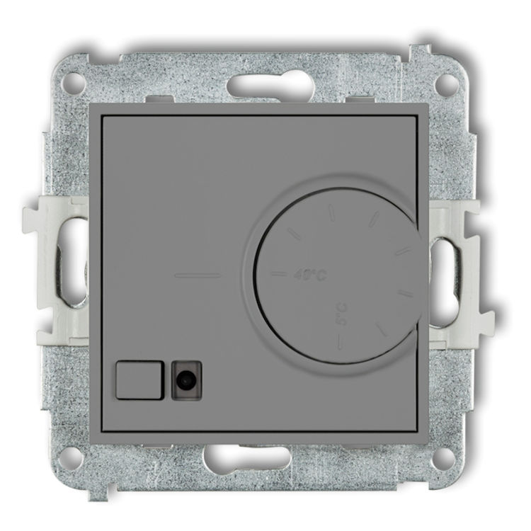 Mechanizm elektronicznego regulatora temperatury z czujnikiem powietrznym w kolorze Szarym Mat to elektroniczny regulator temperatury umożliwia utrzymanie nastawionej temperatury powietrza w sposób automatyczny. Regulator z czujnikiem napowietrznym stosuje się w pomieszczeniach, w których zastosowano dowolny rodzaj ogrzewania (ogrzewanie podłogowe lub za pomocą grzejników). Każdy z obwodów stanowi niezależny system grzejny, który można indywidualnie programować.