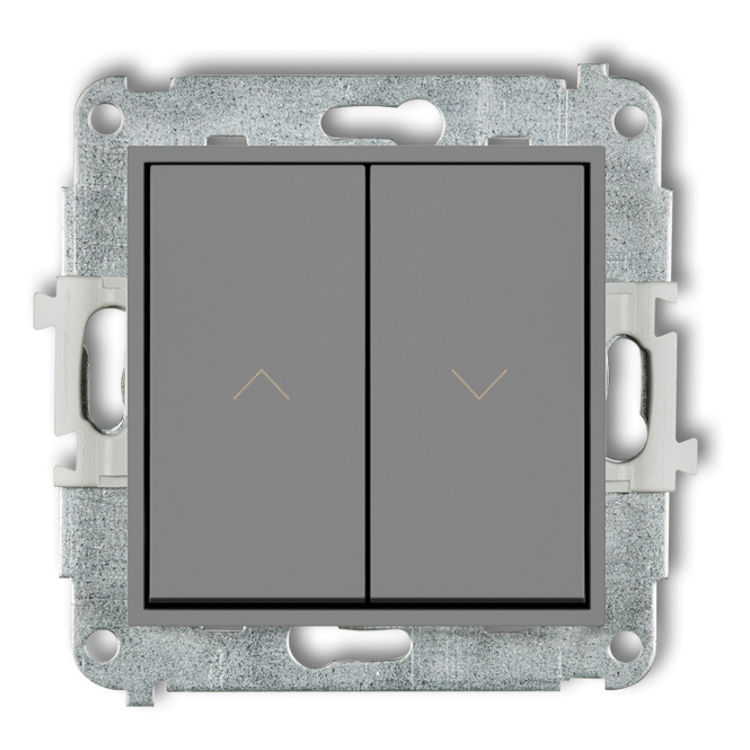 Łącznik przeznaczony do sterowania roletami lub żaluzjami elektrycznymi. Posiada dwa kierunki pracy – jeden klawisz służy do podnoszenia, a drugi do opuszczania osłony. Funkcja podtrzymania sprawia, że po naciśnięciu klawisza żaluzja lub roleta porusza się aż do ponownego wciśnięcia, co pozwala wygodnie zatrzymać ją w dowolnym położeniu.