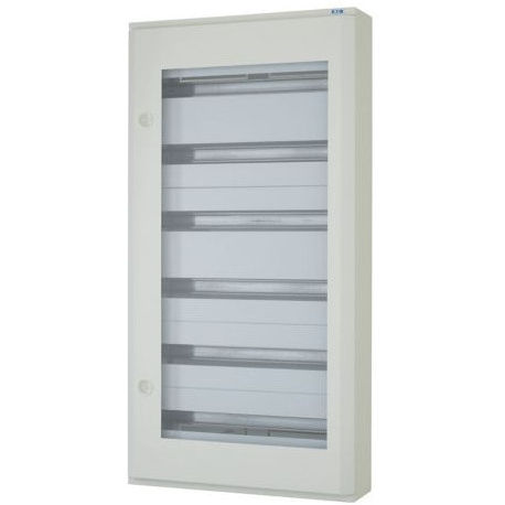 Rozdzielnica natynkowa EATON BF-OT-6/144-P o wymiarach 1055x545x140 mm to praktyczna i solidna obudowa przeznaczona do zabudowy aparatury modułowej w instalacjach mieszkaniowych, biurowych i komercyjnych. Dzięki sześciu rzędów po 24 moduły umożliwia uporządkowany montaż aż 144 modułów. Wytrzymała stalowa konstrukcja, zabezpieczona powłoką proszkową oraz stopień ochrony IP30 zapewniają trwałość, bezpieczeństwo i estetykę wykonania.