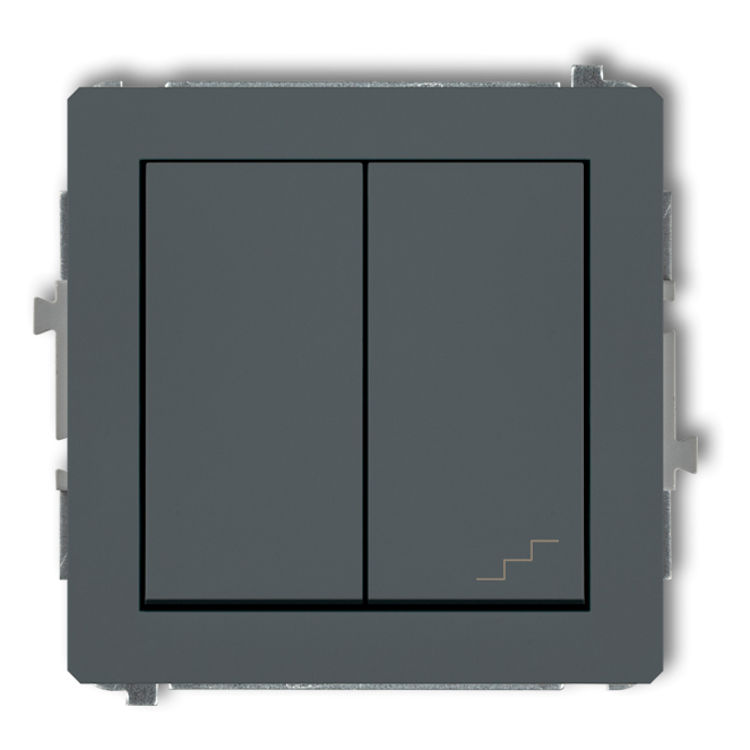Mechanizm łącznika jednobiegunowego ze schodowym (wspólne zasilanie) w kolorze Grafitowym Mat to mechanizm łącznika, który łączy w sobie funkcję zwykłego włącznika światła oraz schodowego. Dzięki temu można sterować jednym źródłem oświetlenia z dwóch różnych miejsc, na przykład z dołu i góry schodów. Rozwiązanie to zapewnia wygodę w codziennym użytkowaniu i oszczędność miejsca, ponieważ jeden mechanizm spełnia dwie role.