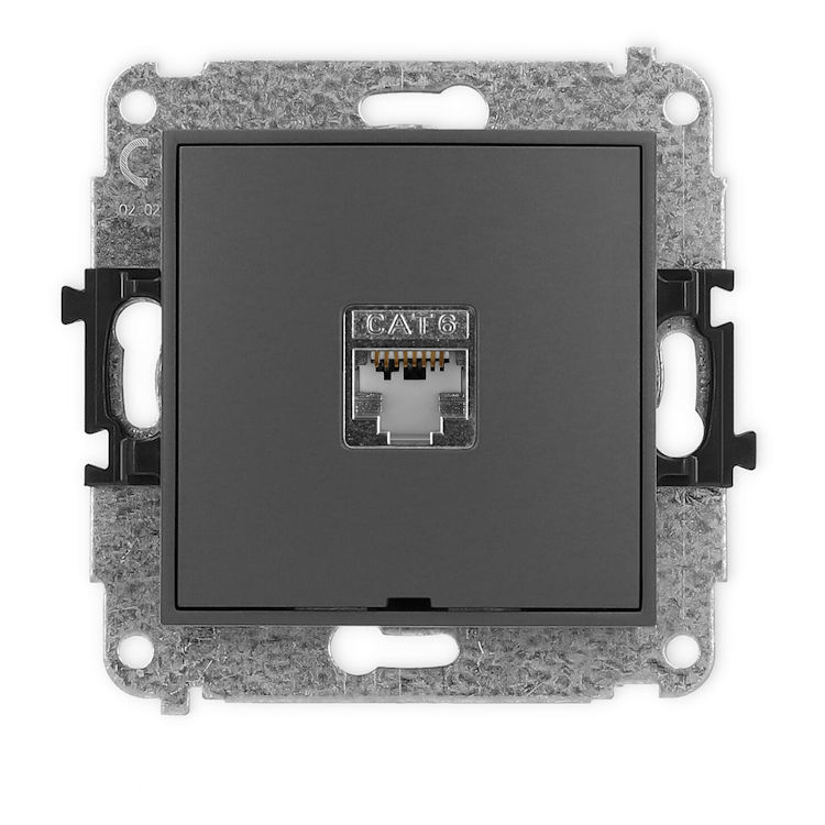 Mechanizm gniazda komputerowego pojedynczego 1xRJ45, kat. 5e, ekranowany, 8-stykowy, bez pola opisowego w kolorze Grafitowym Mat to gniazdo komputerowe z jednym wejściem RJ45, które służy do podłączenia przewodu sieciowego. Obsługuje kategorię 5e, co pozwala na szybki i stabilny transfer danych w domowej lub biurowej sieci internetowej. Dzięki niemu można podłączyć komputer, router czy inne urządzenie wymagające dostępu do Internetu przewodowego.