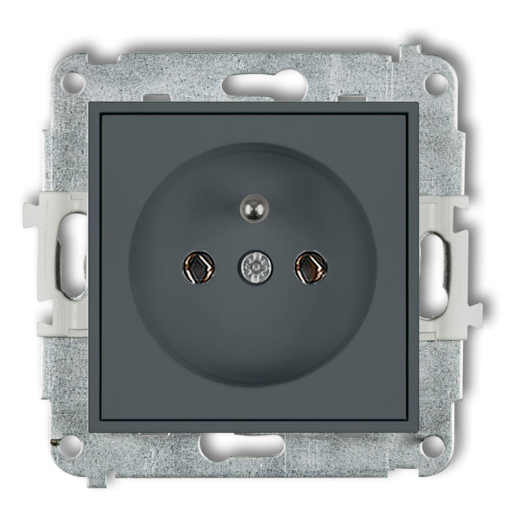 Mechanizm gniazda pojedynczego z uziemieniem 2P+Z (bez przesłon torów prądowych) w kolorze Grafitowym Mat to pojedyncze gniazdo elektryczne z uziemieniem, które zapewnia dodatkową ochronę podczas korzystania ze sprzętów podłączonych do prądu. Posiada dwa otwory na wtyczkę oraz bolec uziemiający, który zwiększa bezpieczeństwo użytkowania. Brak przesłon oznacza, że otwory są cały czas odsłonięte, dlatego zaleca się montaż w miejscach, gdzie nie ma małych dzieci.