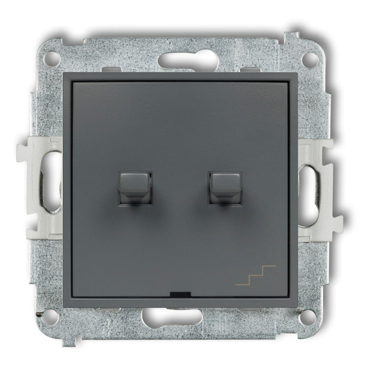Mechanizm łącznika jednobiegunowego ze schodowym (wspólne zasilanie) w stylu amerykańskim w kolorze Grafitowym Mat to łącznik w stylu amerykańskim, który łączy w sobie funkcję zwykłego włącznika światła oraz tzw. łącznika schodowego. Umożliwia sterowanie jednym źródłem oświetlenia z dwóch różnych miejsc, na przykład z dołu i góry schodów, a dodatkowo pozwala obsługiwać drugi obwód z tego samego mechanizmu.