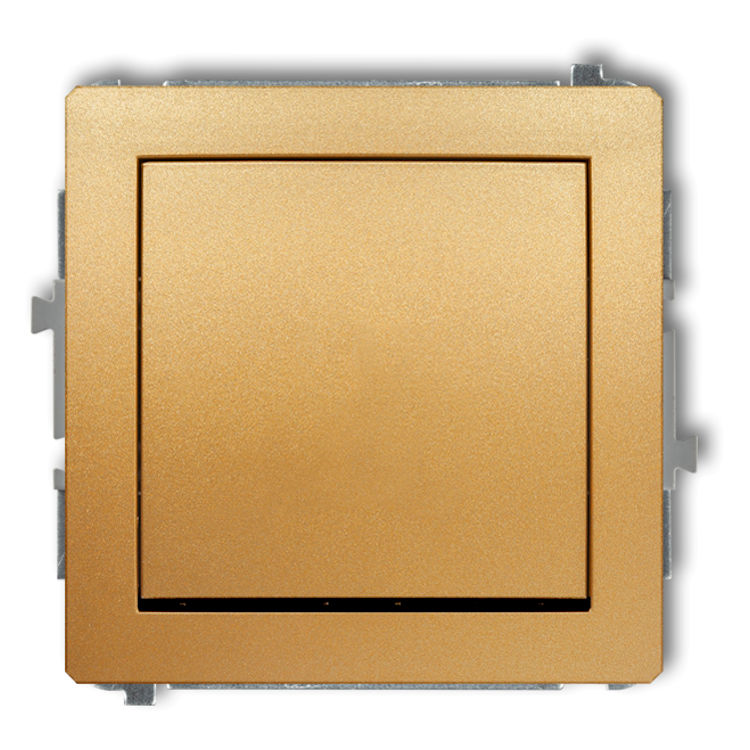 Mechanizm łącznika jednobiegunowego w kolorze Złotym To mechanizm łącznika, który pełni funkcję standardowego włącznika światła. Umożliwia włączanie i wyłączanie jednego obwodu oświetleniowego z jednego miejsca. Rozwiązanie to jest proste i praktyczne, sprawdzając się w domach, biurach i innych pomieszczeniach codziennego użytku.