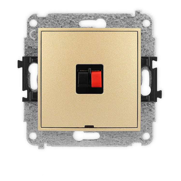 Mechanizm gniazda głośnikowego pojedynczego, bez pola opisowego w kolorze Złotym to gniazdo przeznaczone do podłączenia jednego głośnika przewodowego. Ułatwia podłączenie i odłączenie kabli, zapewniając stabilne i pewne połączenie bez ryzyka ich wysuwania się. Dzięki temu można w estetyczny i wygodny sposób zorganizować domową instalację audio.