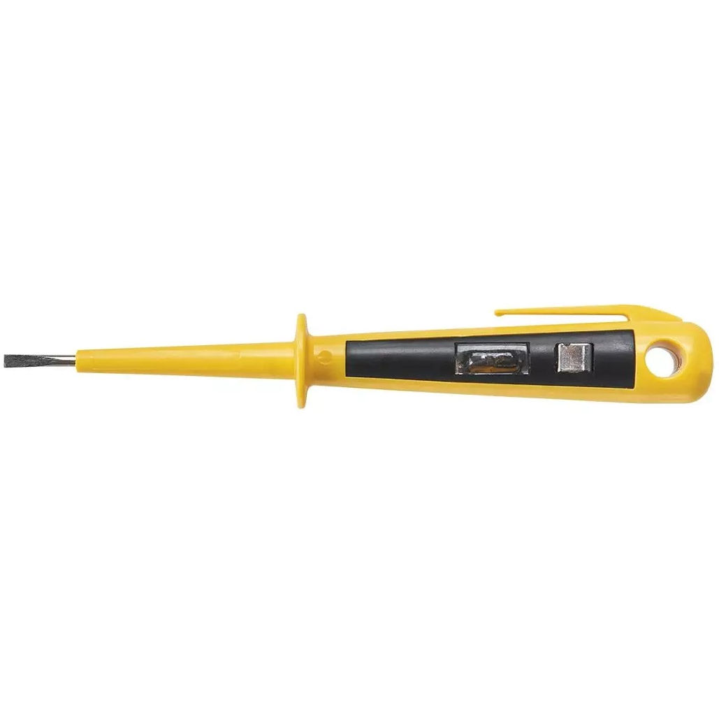 Próbnik instalacji elektrycznej marki TOPEX to niezastąpione narzędzie do błyskawicznego sprawdzania obecności napięcia w gniazdkach, przewodach oraz innych elementach instalacji elektrycznej. Kompaktowy, poręczny i łatwy w obsłudze – idealny zarówno dla profesjonalistów, jak i użytkowników domowych.