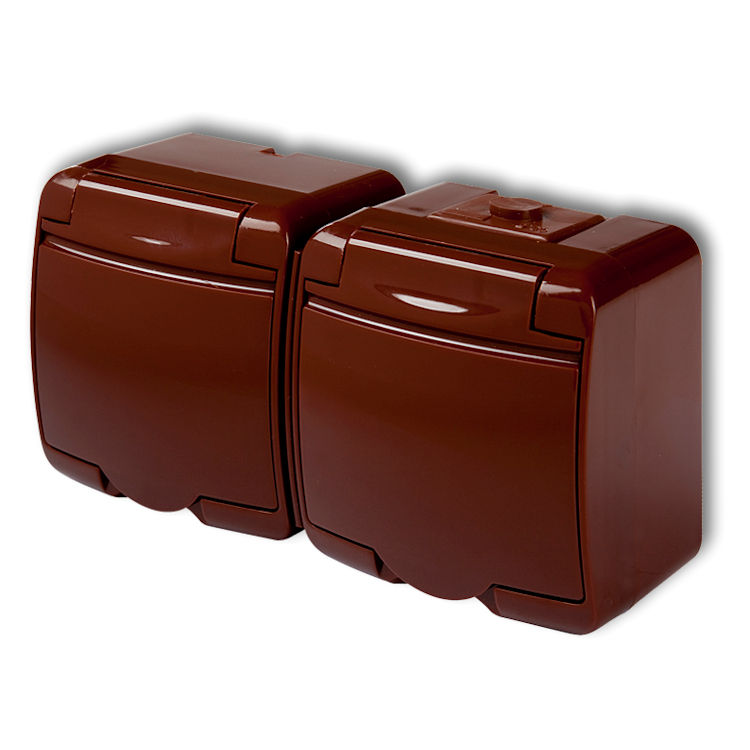 4GHE-2p Gniazdo podwójne z uziemieniem 2x(2P+Z) (klapka brązowa, przesłony torów prądowych) Brązowy