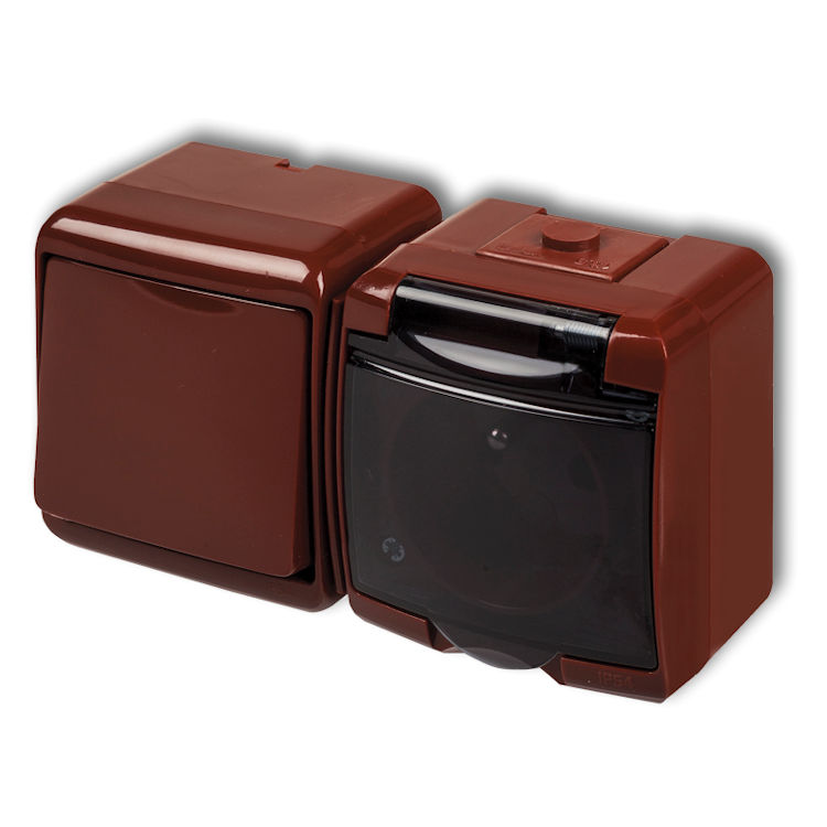 Łącznik jednobiegunowy z gniazdem pojedynczym z uziemieniem 2P+Z (klapka dymna, przesłony torów prądowych) w kolorze brązowym to połączenie łącznika jednobiegunowego z pojedynczym gniazdem z uziemieniem, które pozwala w jednym miejscu sterować oświetleniem i zasilać urządzenie elektryczne. Wyposażone jest w dymną klapkę ochronną oraz przesłony torów prądowych, które zwiększają bezpieczeństwo użytkowania. Dzięki temu rozwiązanie jest praktyczne i bezpieczne, sprawdzając się doskonale w domach, biurach i pomieszczeniach użytkowych.