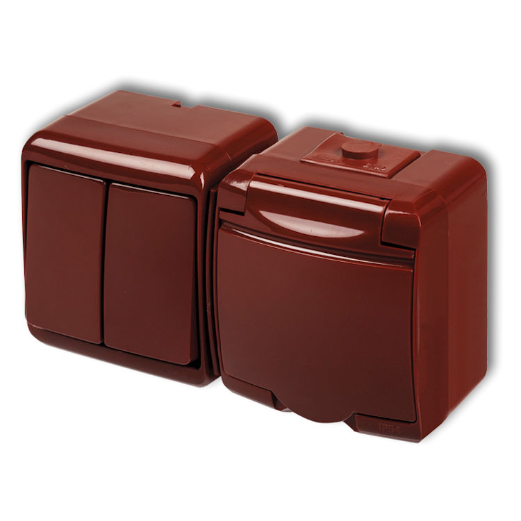 Łącznik świecznikowy z gniazdem pojedynczym z uziemieniem 2P+Z (klapka brązowa, bez przesłon) w kolorze brązowym to połączenie łącznika świecznikowego z pojedynczym gniazdem z uziemieniem, które umożliwia niezależne sterowanie dwoma źródłami światła oraz podłączenie urządzenia elektrycznego w jednym punkcie. Wyposażone jest w białą klapkę ochronną, zabezpieczającą wnętrze gniazda przed kurzem i przypadkowym dotknięciem styków. Brak przesłon torów prądowych ułatwia szybkie korzystanie, co czyni to rozwiązanie wygodnym i praktycznym w codziennym użytkowaniu.