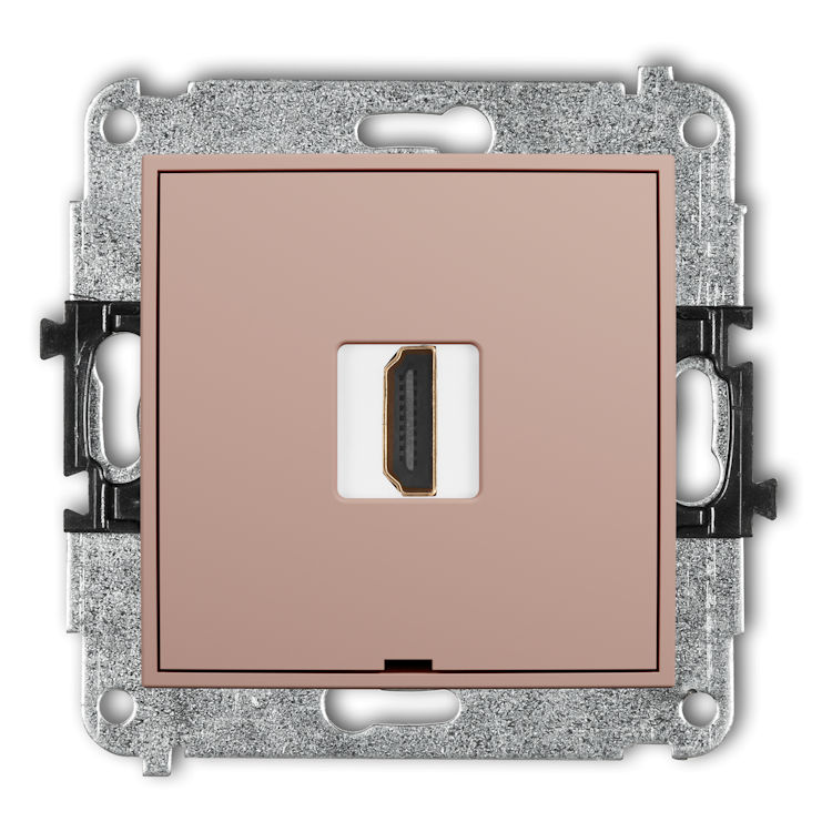 Mechanizm gniazda pojedynczego HDMI 2.0, 4K, bez pola opisowego w kolorze Łososiowym to gniazdo umożliwia podłączenie urządzeń multimedialnych za pomocą przewodu HDMI. Służy do przesyłania obrazu i dźwięku w wysokiej jakości, obsługując standard 2.0 oraz rozdzielczość 4K. Dzięki niemu można wygodnie podłączyć telewizor, konsolę, dekoder czy odtwarzacz, zachowując czysty i stabilny sygnał.