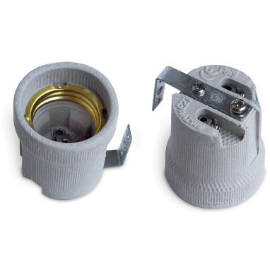 Oprawka ceramiczna E27 F519L-E27 marki RGB TECHNIK to solidny komponent oświetleniowy przeznaczony do montażu żarówek z popularnym gwintem E27. Wykonana z odpornej na wysokie temperatury ceramiki, zapewnia bezpieczną i trwałą pracę nawet przy długotrwałym użytkowaniu. Zintegrowany uchwyt stalowy ułatwia montaż w różnych typach opraw oraz konstrukcjach technicznych i przemysłowych.