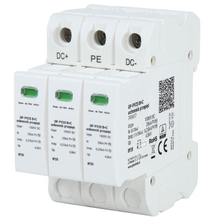 Ogranicznik przepięć RGB Technik OP-PV20 został stworzony z myślą o ochronie nowoczesnych instalacji fotowoltaicznych przed skutkami przepięć wywołanych wyładowaniami atmosferycznymi oraz przepięciami łączeniowymi. Urządzenie w klasie ochrony T1+T2 (B+C) doskonale zabezpiecza obwody prądu stałego o napięciu do 1000V DC, zapewniając bezpieczeństwo modułów PV oraz...