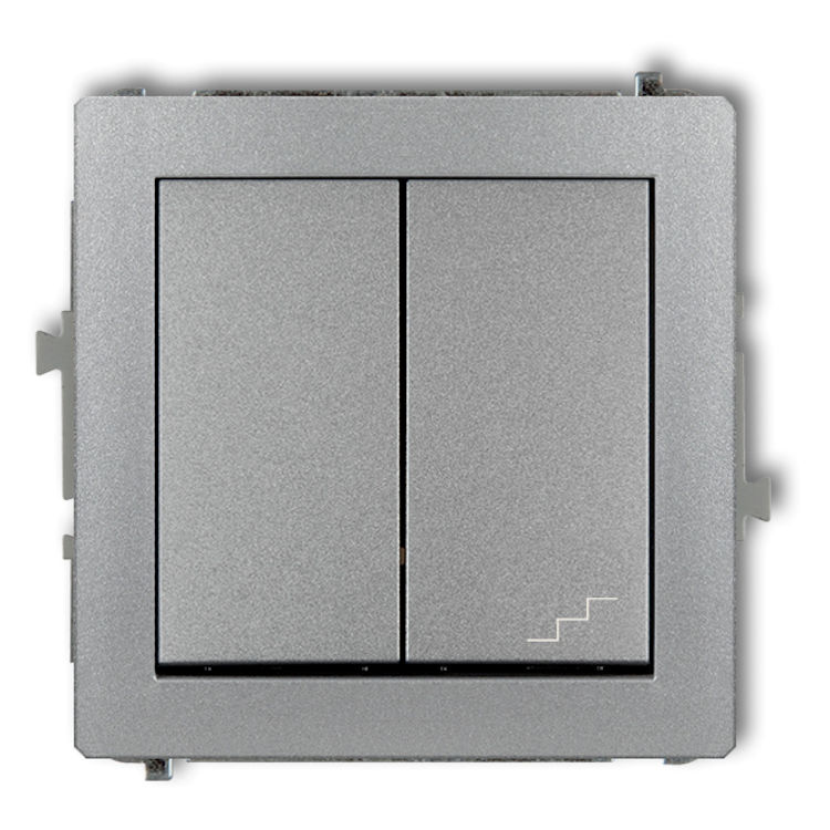 Mechanizm łącznika jednobiegunowego ze schodowym (wspólne zasilanie) w kolorze Srebrnym Metalik to mechanizm łącznika, który łączy w sobie funkcję zwykłego włącznika światła oraz schodowego. Dzięki temu można sterować jednym źródłem oświetlenia z dwóch różnych miejsc, na przykład z dołu i góry schodów. Rozwiązanie to zapewnia wygodę w codziennym użytkowaniu i oszczędność miejsca, ponieważ jeden mechanizm spełnia dwie role.