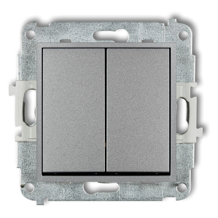 7IWP-44.1 Mechanizm łącznika zwiernego, świecznikowego (dwa klawisze bez piktogramów, wspólne zasilanie) Srebrny Metalik
