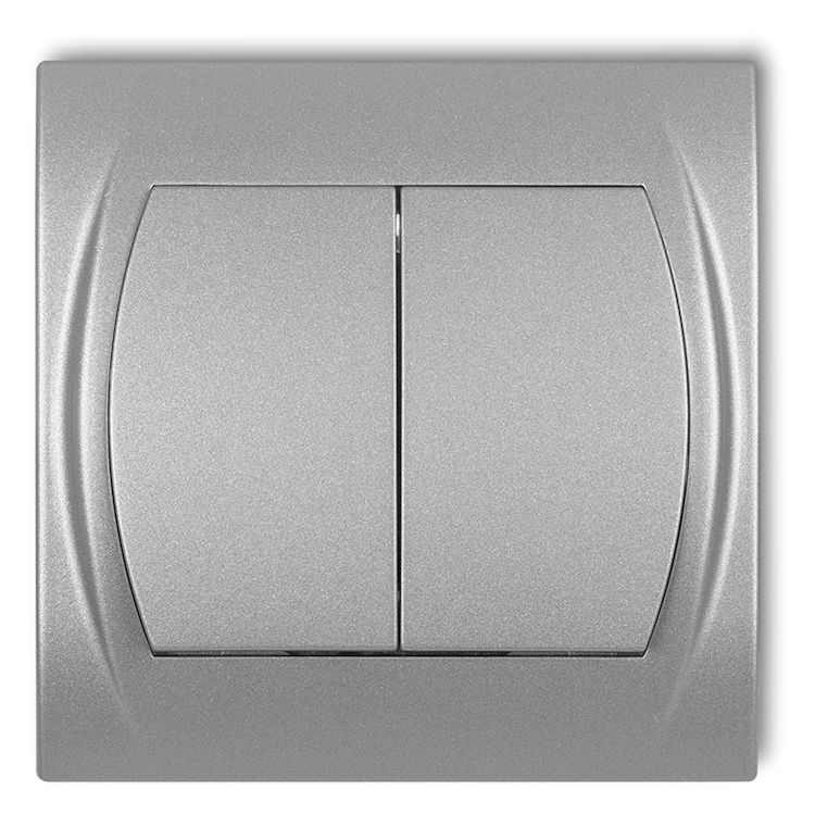 7LWP-10L.11 Łącznik jednobiegunowy ze schodowym podświetlany (dwa klawisze bez piktogramów, wspólne zasilanie) Srebrny Metalik