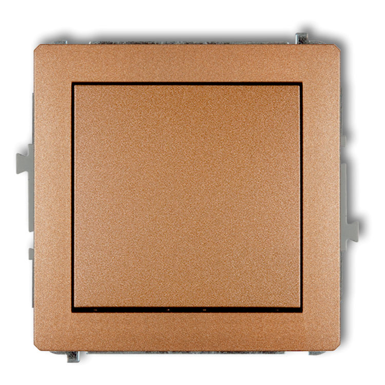 Mechanizm łącznika jednobiegunowego w kolorze Złotym Metalik To mechanizm łącznika, który pełni funkcję standardowego włącznika światła. Umożliwia włączanie i wyłączanie jednego obwodu oświetleniowego z jednego miejsca. Rozwiązanie to jest proste i praktyczne, sprawdzając się w domach, biurach i innych pomieszczeniach codziennego użytku.