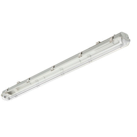 Oprawa WT050C marki PILA to wytrzymała, hermetyczna konstrukcja przeznaczona do pracy z dwiema tubami LED typu TLED o długości 120 cm. Dzięki klasie szczelności IP65 zapewnia pełną ochronę przed pyłem i wilgocią, co czyni ją idealnym wyborem do zastosowań w trudnych warunkach środowiskowych. Obudowa z wytrzymałego poliwęglanu gwarantuje długą żywotność oraz odporność na uszkodzenia mechaniczne.