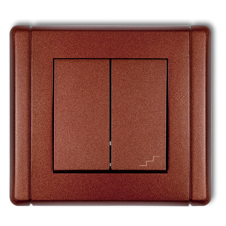 Łącznik jednobiegunowy ze schodowym (wspólne zasilanie) w kolorze Brązowym Metalik to mechanizm łącznika, który łączy w sobie funkcję jednobiegunowego oraz schodowego, wykorzystując wspólne zasilanie. Umożliwia sterowanie jednym źródłem światła z dwóch różnych miejsc, co zwiększa wygodę użytkowania, na przykład na klatce schodowej lub w długim korytarzu. Rozwiązanie to zapewnia funkcjonalność i oszczędność miejsca, ponieważ jeden mechanizm spełnia dwie role.