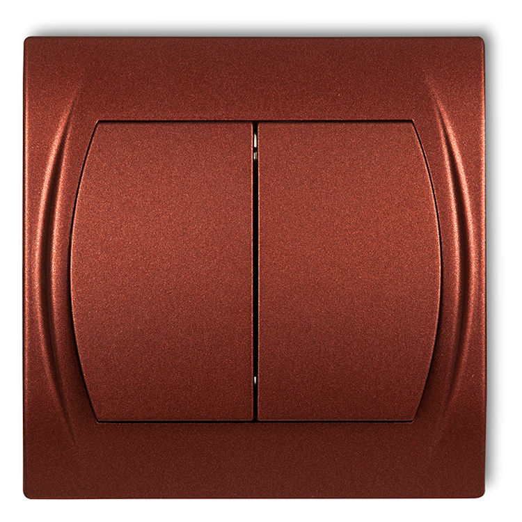 9LWP-10L.11 Łącznik jednobiegunowy ze schodowym podświetlany (dwa klawisze bez piktogramów, wspólne zasilanie) Brązowy Metalik